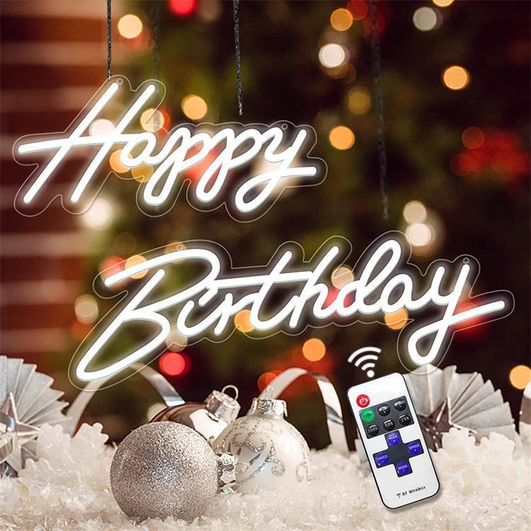 Lampe néon “Happy Birthday” – Ambiance festive et lumineuse Illuminez vos moments spéciaux avec ce superbe néon “Happy Birthday”. Monté sur une plaque acrylique transparente, il diffuse une lumière blanche froide éclatante, parfaite pour les anniversaires, soirées ou décorations murales. Facile à installer et durable, il crée instantanément une atmosphère chaleureuse et joyeuse. ✅ Alimentation EU – branchement direct ✅ Matériau : acrylique transparent + silicone flexible ✅ Poids : 1 kg ✅ Taille : environ 40 cm Idéal pour : anniversaires, soirées, bars, décorations murales